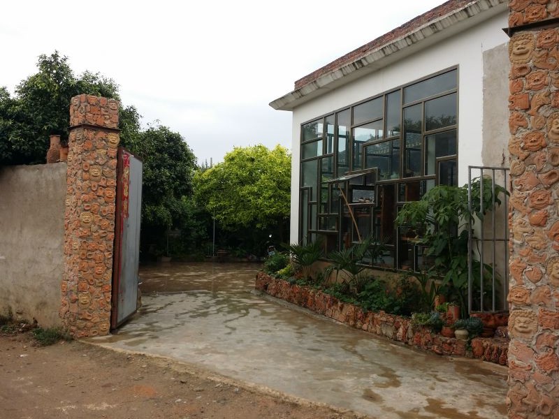 走近土陶馆,大门两边的柱子上镶嵌着各式各样的泥巴图腾,俨然就是一个土陶面具堆起来的柱墩。两边花台上更是镶嵌着各式各样的土陶和瓷器烧制品,别具一格。馆主杨庆坤说,这些土陶瓷器虽然独特,但都是一些烧坏的瓷器,废品利用,觉得好看可以自己捡上几件作为摆件。